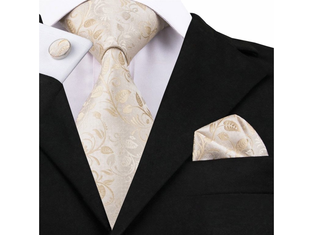 Kravatový set obsahující kravatu, kapesníček a manžety.