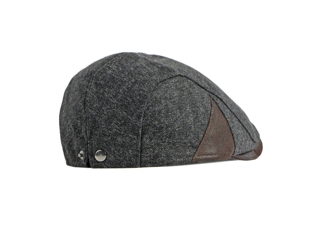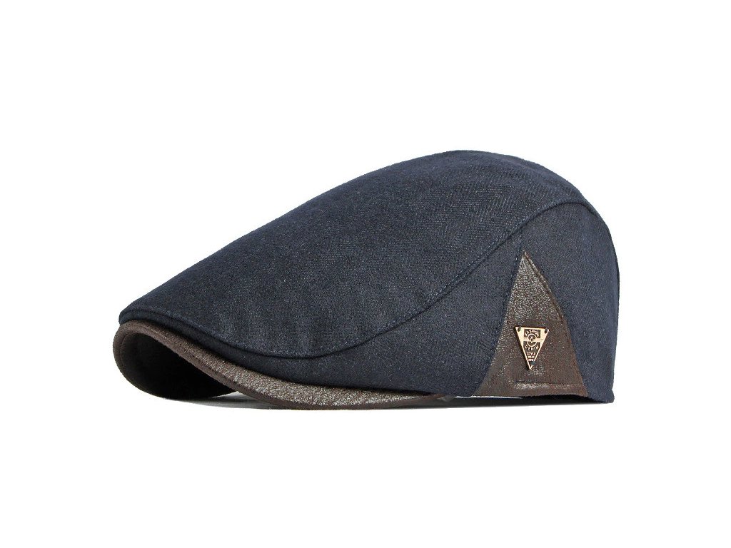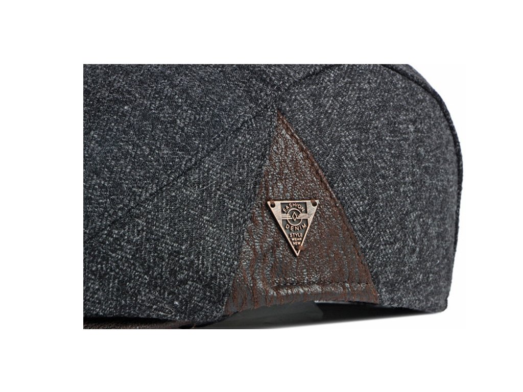 Pánská hřejivá bekovka dvoubarevná s koženým kšiltem - modrá